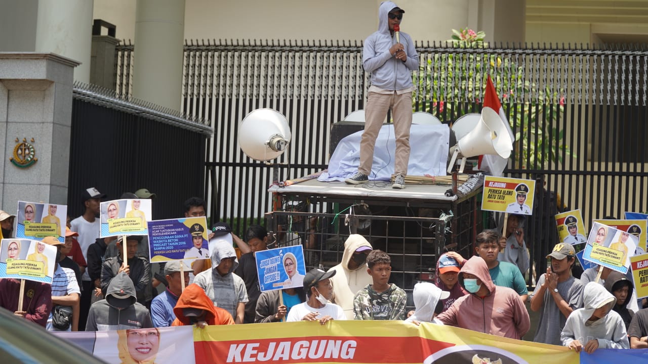 Mereka menuntut kasus dugaan korupsi penyelewengan penggunaan dana PT Waskita Beton Precast tahun 2016-2020 yang menyeret nama Bupati Serang Ratu Tatu Chasanah (RTC) itu diusut hingga tuntas. Dan mendesak agar Kejagung memeriksa ulang Ratu Tatu.